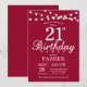 21. Geburtstag Einladung mit String Lights. Burgundy Red Background. 13. 15. 16. 18. 20. 21. 30. 40. 50. 60. 70. 80. 90. 100. Jedes Alter. Für weitere Anpassungen klicken Sie bitte auf die Schaltfläche "Anpassen" und verwenden Sie unser Designwerkzeug, um diese Vorlage zu ändern.