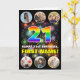 Die Vorderseite dieses aufregenden und kühnen Geburtstagskarten-Designs zeigt eine große Zahl "21" mit einem farbenprächtigen Regenbogenspektrum inspirierten Farbverlaufsmuster, zusammen mit der Meldung "HAPPY 21. BIRTHDAY" und einem individuelle Name, auf einem bunten Feuerwerk inspiriert Muster. In der Nähe von oben und unten sind Bilder, die individuell angepasst werden können, vielleicht mit Fotos der Familie und Freunden des Empfängers. Im Inneren befindet sich eine individuell angepasste Geburtstagsgrüßbotschaft, oder man könnte sie löschen und leer verlassen werden, wenn eine Nachricht von Hand geschrieben werden soll. Eine positive, anpassbare Geburtstagskarte wie diese könnte eine lustige Art sein, jemandem, der seinen 21. Geburtstag feiert, eine Geburtstagsgrüße zu senden. (Fotografie © Storytree Studios, Stanford, CA.) [~Z000660]