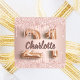 Für ein mädchenhaft und glamourös 21. Geburtstag Party. Eine Rose goldener Hintergrund mit Imitats Glitzer Tropfen, Farbe tropfen aussehen. Personalisieren und einen Namen hinzufügen. Der Name ist in dunklem Rose Gold mit einem modernen handgeschriebenen Stil geschrieben. Nummer 21 wird mit einem Schriftart im Ballonstil geschrieben.