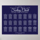 Faites de votre réception de mariage une belle avec ce tableau de 21 places. Conçu dans le cadre de notre Silver & Navy Elegant Wedding Suite, il présente un design simple mais élégant avec du texte blanc sur un arrière - plan bleu marine avec une bordure florale en faux feuille argent. Ce graphique montre les affectations de table afin que vos invités aient un temps facile à trouver la bonne table.