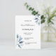 Un invitation de fête de 21e anniversaire élégant et simple. Devant un arrière - plan blanc et chic décoré de branches botaniques bleues, des fleurs. Modèles pour un nom, 21 ans et les détails de votre fête. Dos : couleur arrière - plan bleue classique. Conseil : Si vous ne voulez pas qu'il ressemble à une carte postale, cliquez sur customiser, allez à l'arrière et retirez le séparateur et le timbre postal.
