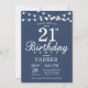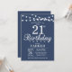 21e Invitation d'anniversaire avec des lampes à cordes. Arrière - plan bleu. Invitation anniversaire d'élégante femme ou homme. 13e 15e 16e 18e 20e 21e 30e 40e 50e 60e 70e 80e 90e 100e, n'importe quel âge.