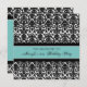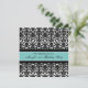 21èmes invitations de fête d'anniversaire de coutume dans le bleu de turquoise élégant, motif floral classique noir et blanc de damassé. Ajoutez vos détails de nom et de partie pour 21ème une invitation unique et élégante de fête d'anniversaire.