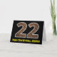 Die Vorderseite dieses lustigen und rustikalen Geburtstags-Thema Grußkarten-Design verfügt über eine große Zahl "22" mit einem Fake Holz Korn inspiriert Look Muster, zusammen mit der Meldung "Happy 22. Geburtstag," und einem anpassbaren Namen. Im Inneren befindet sich eine individuell anpassbare Geburtstags-Grußnachricht, oder vielleicht kann gelöscht und links werden, wenn eine Nachricht von Hand geschrieben werden soll. Eine solche individuelle Geburtstagskarte könnte eine lustige Art sein, Geburtstagswünsche an jemanden zu senden, der seinen 22. Geburtstag feiert. [~Z0000431]