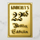 An der Vorderseite dieses luxuriösen 22. Geburtstagsparty-Einladungs-Kartendesigns steht die Meldung "22. Geburtstagsfeier" im verzierten Skriptstil. Es verfügt auch über einen individuelle Name. Auf der Rückseite finden Sie personalisierte Details zum Ereignis, wie Datum, Uhrzeit, Ort und andere relevante Informationen. Verzierte, aufwändige und individuell gestaltbare Einladungen wie diese können genutzt werden, um Gäste zu einer Geburtstagsparty einzuladen, die anlässlich des 22. Geburtstages von jemandem gefeiert wird. [~Z0000596]