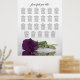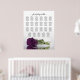 Ce tableau de 23 sièges mariages de table présente une image magnifique d'un seul rose à long tige de prune violet ou d'aubergine couché sur son côté réfléchissant dans l'eau avec des vagues et des ondulations. Le titre dit "s'il vous plaît trouvez votre table" dans la calligraphie de script dentée. Il y a de la place pour les noms des couples et la date du mariage. Ce tableau a des affectations de table pour 230 invités 10 personnes par table.
