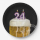 24. Geburtstagsbier auf schwarzem Papierplatten Pappteller