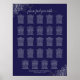 Cette belle carte de sièges mariages est simple mais élégante. Il présente une belle conception de texte gris clair sur un arrière - plan bleu marine avec un faux fil argenté floral en dentelle dans les coins. Il comprend des tables pour 240 personnes avec 10 personnes par table.