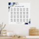 Ce charmant tableau de 24 places de mariage peut accueillir 240 convives, avec un agencement traditionnel de 10 places par table. Le design dégage une élégance bohème rustique, mettant en valeur des roses d'aquarelle délicats dans des tons bleu poussiéreux, bleu marine et indigo, magnifiquement complétés par des sprigs d'eucalyptus feuilles, fleurs de lavande et verdure du jardin. Au-delà de sa fonctionnalité pratique de diriger les invités vers leurs tables assignées, ce tableau de sièges ajoute également une touche de sophistication et de personnalité à votre réception de mariage.