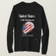 Beautiful and elegant long sleeve t-shirt for men to commemorate the 250th anniversary of the United States. The t-shirt shows the name of the country on the top, plus 250th anniversary and the dates 1776-2026 on the bottom, all in white and creating a nice contrast with some dark colors such as grey or black. The image of an American flag appears in the center in a diagonal position like if it were waving in the wind.