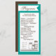 Pour modifier la couleur de l'arrière - plan et des objets, cliquez sur le bouton "customiser". Ensuite, sur le côté gauche, faites défiler vers le bas vers la "Couleur de l'Arrière - plan imprimé" et sélectionnez une couleur, ou cliquez sur l'icône "goutteur d'oeil", puis cliquez sur une couleur désirée. Ajoutez ensuite à votre panier normalement. Cette carte de programme de mariage de taille 4x9 est parfaite pour tout couple à donner à l'entrée de leur cérémonie pour faire connaître à leurs invités quelles chansons seront jouées et l'ordre des cérémonies. Ils sont fournis avec des enveloppes blanches standard mais vous pouvez simplement les jeter ou vous pouvez les garder et utiliser les enveloppes avec les programmes et habiller l'extérieur de l'enveloppe avec fleur, parties scintillant, ruban, etc. Libellé et mise en page crédité à Jennifer avec des dessins colorés. Nous avons une ligne entière consacrée à ce design ici à zazzle store sous l'onglet * Design Collections menu pour inclure des invitations (5x7), Étiquettes de retour, Étiquettes de messagerie, Envelope Seals, Timbres d'étape, Cup Cake Picks, Water Bottle Wrappers, Hershey's 1.55 oz. Grandes barrettes, Stickers miniatures Hershey's, Sac à Popcorn Micro-Ondes, Cartes de Place Écrits, Toppers à Sac, Cartes de Remerciement FLAT (4x5), Cartes de Remerciement FLADED (4x5), Balises de Faveur, Cartes de Menu, Cartes à Monnaie, Couvercles Lollipop, Signets, Cartes de Bingo, Cartes Marqueurs, Bingo Card Call Out Sheets, Writable Advice cards (4x5), etc.