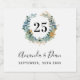 Ein Eukalyptuskranz mit der Anzahl von verheirateten Jahren. Personalisieren und fügen Sie Ihre Namen und ein Datum. Weißer Hintergrund, schwarzer Text.