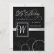 Formale dennoch Zeitgenosse 25. Geburtstags-Feiereinladungen -- Schwarzes mit silbernem Skript und Monogramm. Fertigen Sie den Namen besonders an, datieren Sie und Details für diesen Special und geehrte Gelegenheit. © Teri Francis. Zusammenpassendes Porto und danken Ihnen kardiert verfügbares.