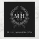 Personalisieren und fügen Sie Ihre Monogramm-Initialen, Jahre der Ehe und einen Text. Die Einrichtung besteht aus einem klassischen Imitat mit einem silberfarbenen Kranz. Schwarzer Hintergrund.
