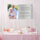 Ein Banner zum 25. Hochzeitstag. Ein elegantes Imitat mit silberfarbenem Hintergrund. Personalisieren und fügen Sie Ihr eigenes Foto des glücklichen Paares. Der Text: Die Namen werden mit einem schwarzen, modernen Schrift geschrieben. Gedreht nach Namen und Datum. Kann als Begrüßungsschild für das Party, als Dekoration aus Party und als Sake verwendet werden.
