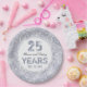 Feiern Sie mit dieser personalisierten Papierplatte den Silberhochzeitstag Ihres Lieblingspärchens! Ein lustiges Retro-Paisley-Muster in eleganten Grautönen dient als hübsche Grenze. Ein Hochzeitstag, zwei Namen und die Worte "25 Jahre" sind in der Nähe des Zentrums vorgestellt und können individuell angepasst werden. Macht eine moderne Drehung auf einem 60er-Muster.