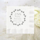 Weißes Papier Servietten für ein 25. Silver Wedding Jubiläum, das eine silbergraue Farbe, Efeu-Kranz-Design mit Jubiläumsnamen und Hochzeitstag in stylisierten, silbergrauen Farbskripten aufweist. Bearbeiten und ersetzen Sie Namen und Hochzeitstermin nach Wunsch. Wählen Sie Ihre Papierserviette aus.