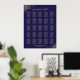 25 Tableau Gold & Marine Blue Mariage Seating Char