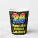 Dieses lustige und fröhliche musikalische Geburtstagskassensystem mit einer großen Zahl "26" mit einem inspirierten Regenbogenspektrum-Muster, mit der Meldung "Happy 26 th Birthday" und einem editierbaren Namen. Der Hintergrund ist farbenfroh, mit Musiknoten und Symbolen verschiedener Farben und Größen. Lebhafte, farbenfrohe Papiertücher wie diese könnten sich bei einem Geburtstagsfest/Party, das zur Ehrung des 26. Geburtstages von jemandem gehalten wird, amüsieren. [~Z0000541]