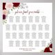 Ce beau tableau de 26 places mariage présente un design boho chic rustique avec des roses aquarelles peints à la main dans les tons rouge pourpre, bordeaux et rose roux. On y trouve des pousses d'eucalyptus feuilles, de la verdure du jardin, des fleurs de lavande ainsi qu'un élégant titre de calligraphie en écriture. L'aménagement traditionnel dispose de places assises pour 260 personnes avec 10 places par table. Excellente façon d'ajouter beauté, élégance et style à votre réception de mariage tout en facilitant la recherche de tables par vos invités.