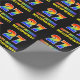 Dieses farbenfrohe, fröhliche und lustige Geburtstagsblatt-Design zeigt eine große Zahl "27" und die Meldung "HAPPY BIRTHDAY", beide mit einem Regenbogenspektrum inspirierte Musterfärbung, zusammen mit einem kühnen gelben, anpassbaren Empfängernamen. Der Hintergrund ist schwarz. So ein lustiges Packpapier kann verwendet werden, wenn man ein Geschenk oder Geschenk zu Ehren des 27. Geburtstages von jemandem gibt. [~Z0000475]