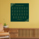 Diese schöne Hochzeitssitzkarte bietet Platz für 27 Tische mit 10 Sitzplätzen pro Tisch oder 270 Personen. Es zeichnet sich durch ein schlichtes und dennoch elegantes Design aus, mit goldfarbenem Text auf einem smaragdgrünen Hintergrund und lackierten dekorativen Imitaten, die goldene Filigree in den Ecken verzieren. Der Titel ist in extravaganter Skriptkalligrafie geschrieben und lautet: Bitte finden Sie Ihre Tabelle. Stilvoll und raffiniert!
