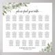Ce tableau de 27 places mariage présente un design boho chic rustique avec des ressorts aquarelles peints à la main de feuilles d'eucalyptus, de verdure et de feuillage dans les tons menthe, mousse et vert sauge. Il comprend des assignations de table pour 270 personnes avec 10 places par table. Le titre élégant de calligraphie de script dit : S'il vous plaît trouver votre table, et les noms du couple et la date mariage apparaissent en bas. Une façon merveilleuse d'aider vos invités à trouver leurs sièges tout en ajoutant élégance et style à votre réception.