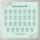 Cette belle carte de sièges mariages a des places pour 27 tables à 10 places par table ou 270 places. Il présente un design simple mais élégant avec du texte bleu marine sur un arrière - plan vert clair ou de couleur néo-menthe et un faux film décoratif en dentelle gris argent dans les coins. Le titre est écrit en calligraphie de script et dit : S'il vous plaît trouver votre table. Design et raffiné !