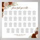 Ce magnifique tableau de sièges à mariage floral d'automne présente un design boho chic rustique avec des roses d'aquarelle peints à la main et des feuillages d'automne dans les tons de rouille orange, pêche de corail et le nombre brûlé. Il y a des sprigs de feuilles d'automne et d'eucalyptus ainsi qu'un élégant titre de calligraphie script. L'aménagement traditionnel dispose de places assises pour 270 personnes à 27 tables avec 10 places par table. Une façon merveilleuse d'ajouter élégance et charme à votre réception de mariage tout en facilitant la recherche de sièges par vos invités.