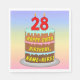 Dieses lustige und fröhliche Geburtstagsthema Papierserviette-Design beinhaltet eine Cartoon-Darstellung eines dreistufigen Geburtstagskuchens mit numerisch geformten Kerzen oben, die die Nummer "28" anzeigt, sowie die Meldung "HAPPY 28. BIRTHDAY" und einen benutzerdefinierten Empfängernamen. Der Hintergrund hat ein mehrfarbiges, pastellfarbenes Regenbogenspektrum, inspiriert Farbverlaufsmuster. Lustige Papierservietten wie diese können bei der Ausrichtung einer Geburtstagsparty für jemanden zum Feiern ihres achtundzwanzigsten Geburtstages verwendet werden. [~Z0000623]