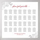 Ce magnifique tableau de sièges mariage présente un design simple mais élégant avec du texte gris foncé et rouge sur un arrière - plan blanc. Le titre est écrit en calligraphie script lettering et dit : s'il vous plaît trouver votre table. Le graphique est décoré d'un frileux floral faux boucles d'argent et tourbillons dans les coins. Contient des sièges pour 28 tables à 10 personnes par table ou 280 personnes.