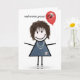 Niedliches Strichmännchen mit kinkigen Haaren, Sneakers, Denim Kleid, und roter Ballon zum 29. Geburtstag.
