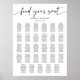 Elégant et moderne Calligraphie Mariage Plan de siège Trouvez votre siège. Carte de siège minimaliste simple personnalisée pour 290 personnes (29 tables). Cliquez simplement sur le lien personnaliser plus loin, affiché sous la zone de personnalisation du texte à droite, et choisissez votre arrière - plan de couleur personnalisé. Ce modèle affiche permet de créer des ajouts étonnants à votre décor mariage rapidement et facilement. Les panneaux peuvent être agrandis, il y a de nombreuses tailles à choisir, ainsi que des options pour le cadrage et le matage personnalisés.