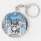 Un porte - clé de citations inspirant représente une simple aquarelle d'une promenade bordée d'arbres. Il présente la Bible Verse 2 Corinthiens 5:7, "Nous marchons par la foi et non par la vue."