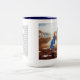 Une tasse de café de deux tons comportant l'illustration et le poème "font face"