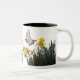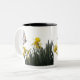Les fleurs magnifiques de jonquille et les papillons de monarque jaunes et blancs pilotant la peinture numérique de la photographie sont sur cette tasse.
