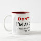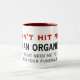 la tasse indique "ne me frappent pas ! Je suis un organiste. (Vous pourriez avoir besoin de moi pour jouer pour votre enterrement.) Les premiers mots sont en rouge d'avertissement lumineux, et de chaque côté des mots sont les tuyaux d'organe tirés. Un peu d'un rire pour encourager tout organiste comme cadeau.