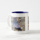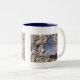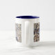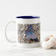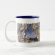 Ein hübscher blauer Schmetterling (Bläuling) auf grauen Steinchen ist das Design dieser Tasse, hier mit dunkelblauer Innenseite. Die Grösse und die Farbe für Innenseite, Rand und Henkel ist wählbar.
