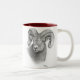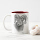 Grande 15 onces. tasse blanche avec l'intérieur de Bourgogne. Tête de RAM des côtés gauches et droits. Art original par Mary Rogers.