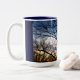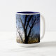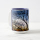 Les branches d'un arbre atteignent dans le ciel bleu sur un cristal - temps clair sur une tasse de bleu et d'or. Un cadeau parfait pour quels qui aiment la nature. Tasse.