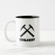 Tasse de géologue avec le symbole croisé de marteau de roche. Fait un grand cadeau d'école ou de bureau.