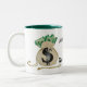 2 sacs d'argent sur cette tasse avec les mots de noir lisant "me montrent juste l'argent" imprimé entre les sacs. Vert-foncé à l'intérieur de la tasse