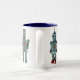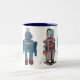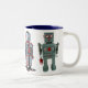 Quatre robots de bidon gardent cette tasse avec du charme.