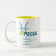 Cette tasse de traits de Poissons fait un cadeau d'anniversaire parfait pour tous les Poissons. Poissons est le douzième signe du zodiaque et inclut toutes les personnes nées depuis le 19 février - 20 mars. Le symbole de Poissons est le poisson. Les traits de personnalité de Poissons sont imaginatifs, compatissants, désintéressés, intuitifs et réservés. La pierre porte-bonheur de Poissons est bleu vert et la planète d'acte de Poissons est Neptune
