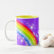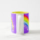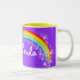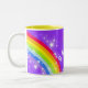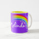 Arc-en-ciel lumineux et coloré "que vos" enfants nommés attaquent. Cadeau parfait pour un enfant vibrant. La tasse indique : Melinda ou personnalisent cette tasse avec le nom de votre choix jusqu'à 7 lettres. Tasse conçue exclusivement par Sarah Trett.