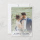Moderne Hochzeitskarte mit einem individuellen vertikalen Foto auf der Vorderseite und einem horizontalen Foto auf der Rückseite. Die Worte "Danke" erscheinen in marineblauer Schrift mit dekorativen Swashes am Anfang und Ende. Fügen Sie Ihre Namen und das Datum und Ort der Hochzeit unten in sans serif Schriftart. Personalisieren Sie die Rückseite mit einer Nachricht Ihrer Wahl in weißen Sans Serif auf einem marineblau Hintergrund, und fügen Sie Ihre Signatur in dekorativen Schriftart Handschrift. Ersetzen Sie die Beispielbilder einfach durch Ihre eigenen Hochzeitsbilder. Ein Bildschirm mit weißem Farbverlauf trägt dazu bei, den Text auf der Vorderseite der Pop sicherzustellen.