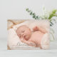 Moderne Geburtsankündigung für Fotos. Benutzen Sie diese Vorlage, um Ihr eigenes, individuelles Foto auf der Vorder- und Rückseite der Karte hinzuzufügen; von Ihrem eigenen süßen Baby und personalisieren Sie mit dem Namen des Babys in der eleganten trendigen Schrift Typografie.