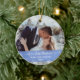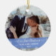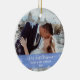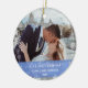 NB: Bitte wählen Sie ein vertikales Foto für die Vorderseite und ein waagerechtes für die Rückseite! Elegant, schick "Unser erstes Weihnachten" verheiratet als Mr. und Mrs. [Name] personalisiertes Foto Weihnachtsschmuck für Neuvermählte, mit kursiver Typografie / Handschrift und einem Rahmen aus weißen und silbernen Schneeflocken und kleinen Sternen. Stellen Sie sicher, dass Sie die beiden Fotos, den Familiennamen und das Jahr, personalisieren.