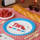 Zweite Geburtstagsgeschenke mit Brammen und rotem und blauem Fisch