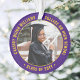 Commémorez la réussite du diplômé avec une élégante coutume violet et jaune or deux photos ronde de graduation ornement de Noël. Les images et tout le texte sont simples à customiser et peuvent être différents à l'avant et à l'arrière. Inclure toute citation inspirante préférée, dicton motivationnel, nom et diplôme de l'école, félicitations, merci maman et papa, ou tout autre message de votre choix. Design comporte une bordure verte, un nom typographique moderne personnalisé, l'école et l'année de classe en cercle, et 2 photos du diplômé, telles que des photos de l'aîné ou des images de la cérémonie de début. Fait une idée de cadeau de remise de diplôme de gardien réfléchi.